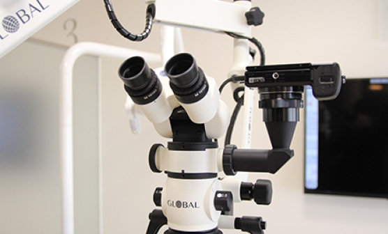 肉眼の5〜20倍まで拡大できる医療用顕微鏡です。緻密で精度の高い治療を叶えるために欠かせません。