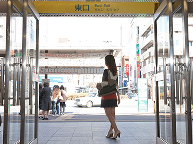 「JR稲毛駅」中央改札を出ます。その後、東口へ向かってください。