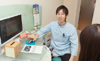 患者さまとのコミュニケーションを第一に、安心して気軽に通院していただけるよう精一杯お手伝いをさせていただきます。お口周りで不安に思うことがあれば、何でも質問してください。