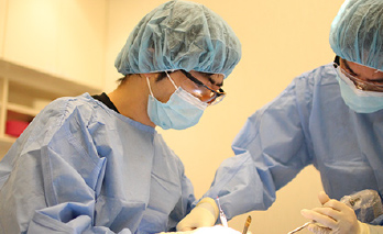 人工歯根(インプラント)を顎の骨に埋め込むために歯肉を切開して、顎の骨を露出させ、インプラントを埋入する外科手術を行います。通常は局所麻酔で行いますが、痛みに対して恐怖心がある方などは、麻酔専門医による静脈内鎮静法も併用する治療も可能です。手術は短時間で終わりますので、入院の必要はありません。