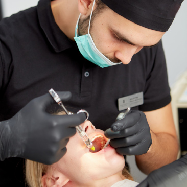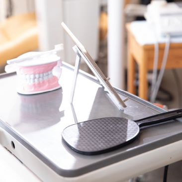 歯科医師、または歯科衛生士によるクリーニングです。ブラシの付いた器具や柔らかいゴムチップなどで歯を優しく磨きます。クリーニング後は歯がツルツルになるので、普段の歯磨き以上に清潔になったことが実感できます。美容室に行く感覚でケアを受けていただけると嬉しいです。