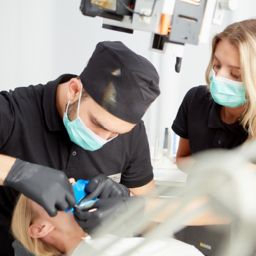 インプラント治療に入る前に、口腔内のクリーニング、虫歯・歯周病などの初期治療を行います。歯や歯肉の汚れ・歯石を除去(クリーニング)し、虫歯や歯周病があれば、優先して治療を行い、お口の状態を回復させます。