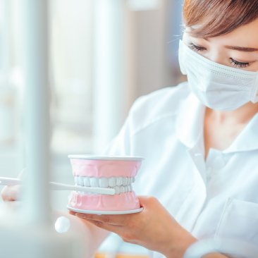 プラークコントロールは、歯垢(プラーク)を増やさないようにすることを指します。歯だけでなく歯肉などに付着する歯垢は細菌の塊で、これがインプラント周囲炎や歯周病の原因となります。毎日の歯磨きで適切に除去しつつ、定期検診で落としきれなかった歯石や歯垢の磨き残しをクリーニングし、丁寧な歯磨き指導でより効果的な磨き方をお伝えします。